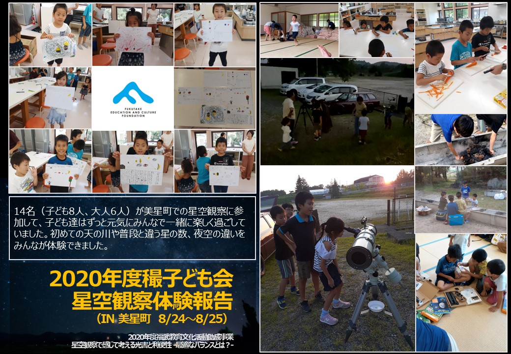 2020年8月24日(月)に岡山県井原市美星町での星空観察を行い、くすのき公園での星空観察の結果と比較して光害の影響について考えてもらいました。