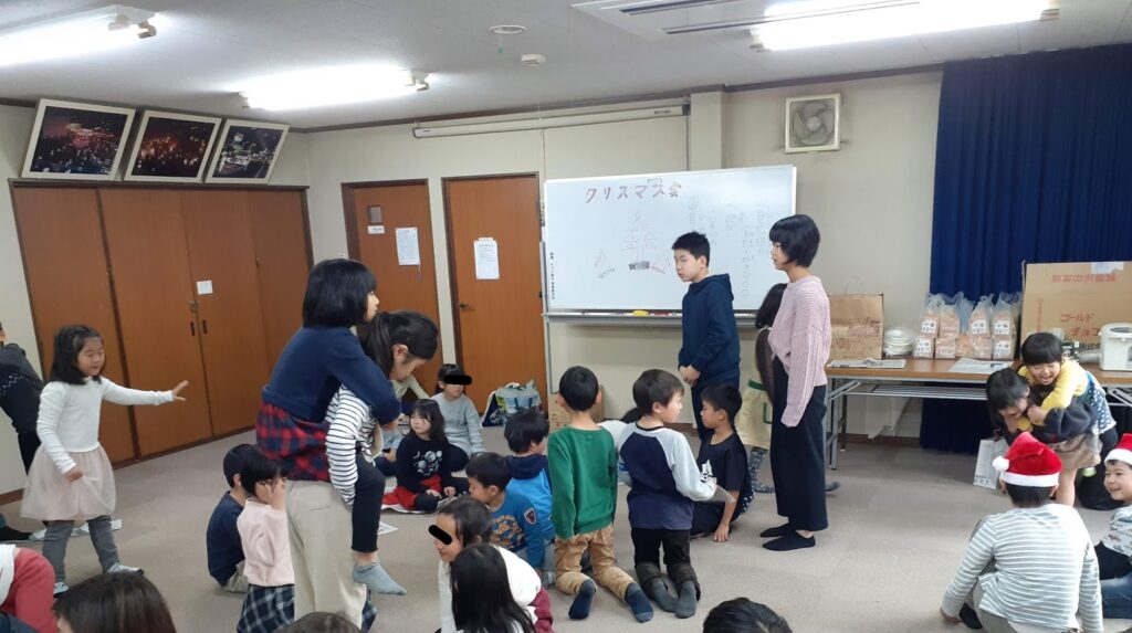 そのため、クリスマス会ですが改めて自己紹介からスタート、自己紹介の後は6年生のみんなが考えてくれたレクリエーションゲームで遊びました。