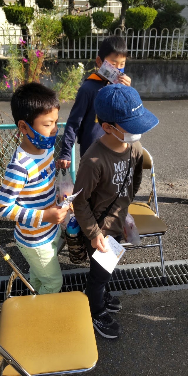 当日お渡ししたお菓子引換券と交換になりますので、忘れずに持ってきてください(引換券も無くなった方には、お名前を控えさせてもらっていますのでお名前をお伝えください)。