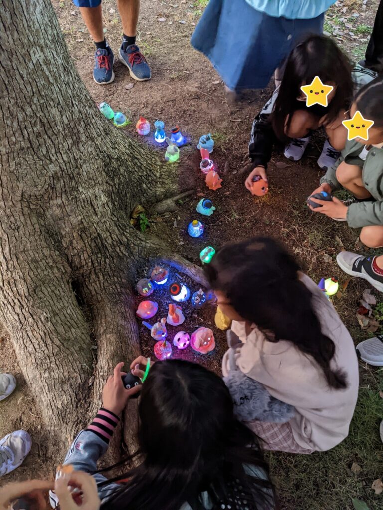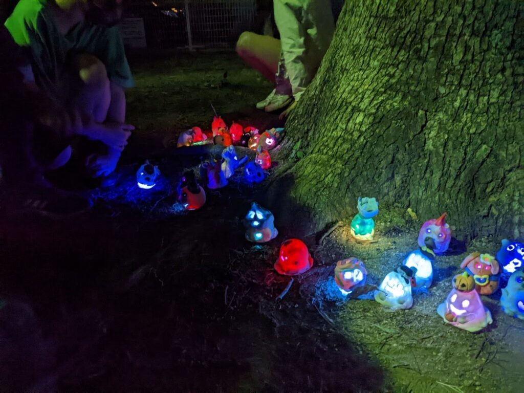 夕方からのランタンナイトは、みんなのランタンを木の下にかざると綺麗に光っていました。