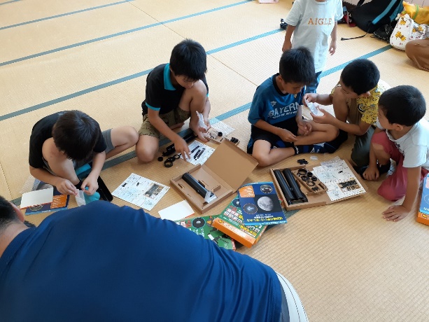 同時に、各自で自由に使ってもらえるように組み立て式望遠鏡、星座早見盤も配布しました。