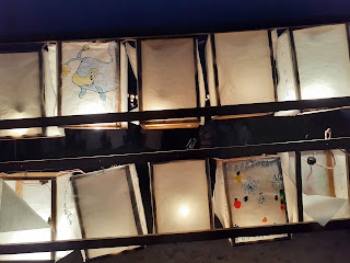 先日、さい公会堂で作った行灯はこんな感じに飾られます。