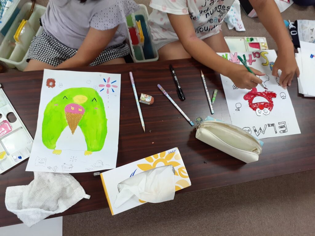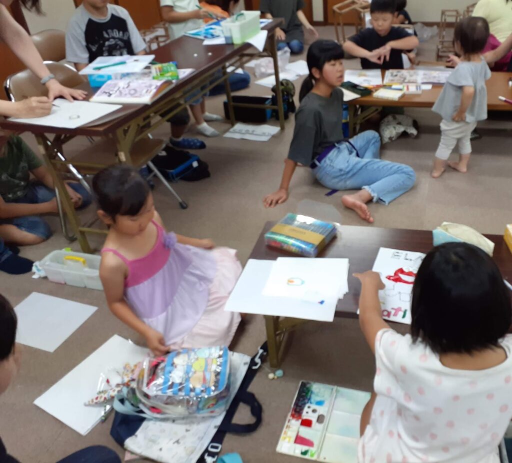半紙に自由に絵を描いて行灯の枠に貼り付けます、今回は26人の子ども達が行灯を作ってくれました。