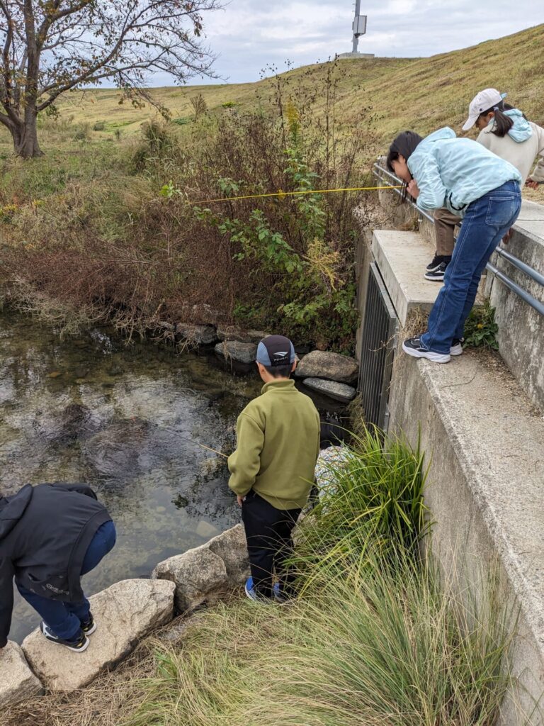 遊んで実感!環境問題を自分ごとに捉えるための体験学習プロジェクトの後半、道路清掃をしながら遊び場まで向かっての川遊び(魚釣り)です。