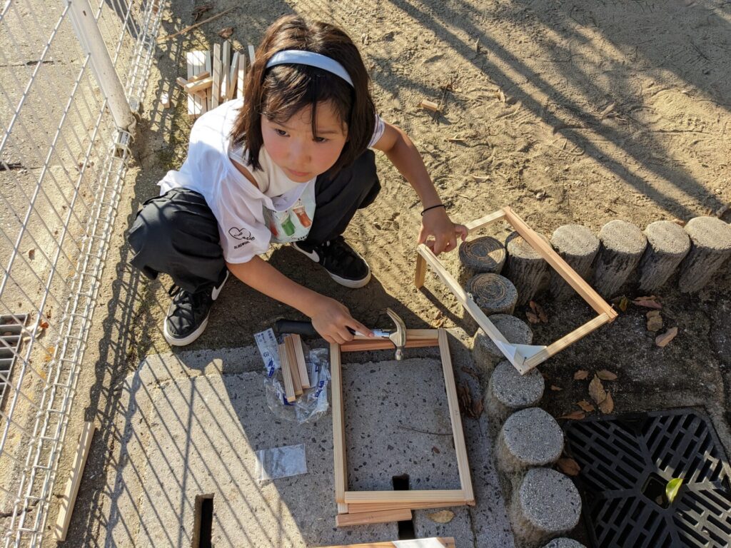 木枠が足りなかったのでみんなで作ってみよう!と思ったものの、かなり大変でした…。