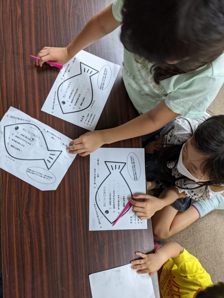 改めて子ども達と一緒に授業を聞いてから、子ども達がお魚の勉強を忘れないように大人が継続して話題に出すように努めようと思いました。また、今回都合が合わずに参加できなかった方に対しては、後日動画を視聴してもらえるように計画しています。
